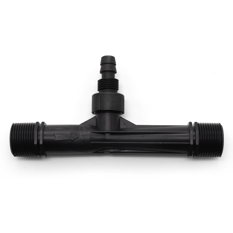 Injectorul Venturi este utilizat pentru a construi orice tip de sisteme de irigare prin picurare. Proiectat pentru furnizarea măsurată de îngrășăminte organice și anorganice solubile în apă în apă. Injectorul este montat după filtrul de purificare a apei în ruptura conductei principale folosind o unitate de bypass (bypass) cu diametrul corespunzător. Admisia îngrășămintelor din rezervor se realizează printr-un furtun de alimentare echipat cu un filtru și o supapă de reglare. Presiunea de funcționare recomandată la intrarea injectorului este de la 2 atmosfere. Pentru a asigura funcționarea corectă a injectorului, diametrul conductei principale trebuie să fie cu 1/2 inch mai mare decât diametrul injectorului. Injectorul este fabricat din plastic de înaltă calitate, rezistent la toate tipurile de îngrășăminte și radiații ultraviolete.