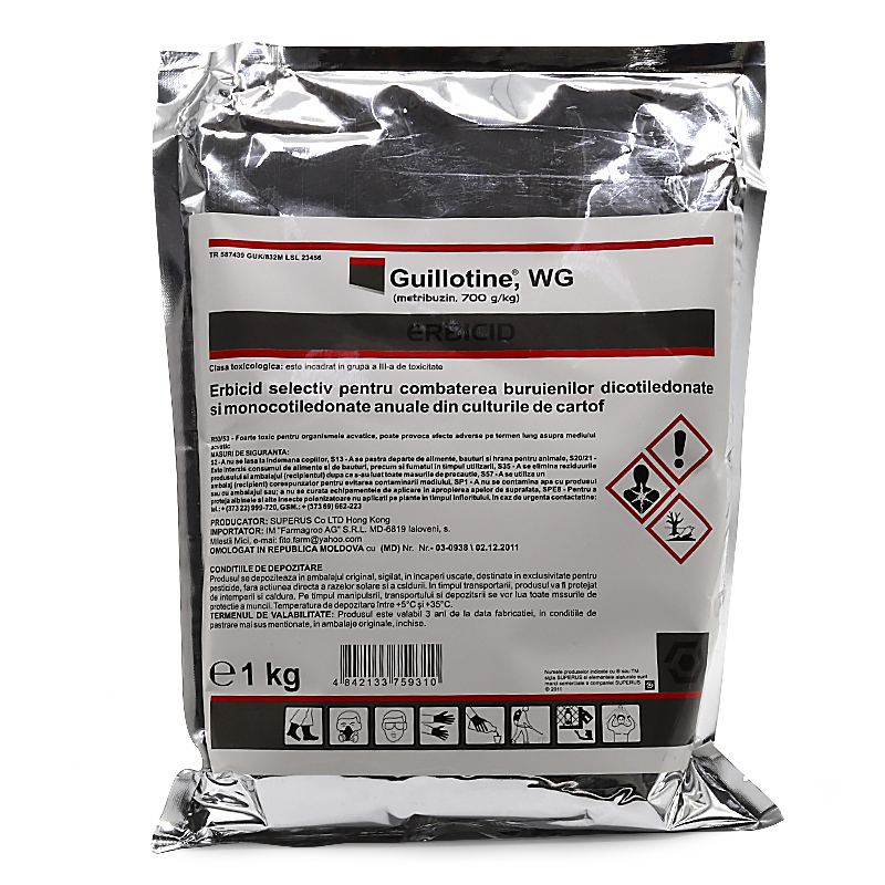 GUILLOTINE, WG (METRIBUZIN, 700 G/KG) erbicid selectiv pentru combaterea buruienilor dicotiledonate si monocotiledonate anuale din culturile de cartof.