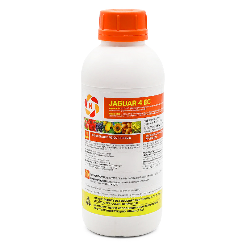 JAGUAR 4 EC - erbicid selectiv postemergent destinat combaterii buruinelor monocotiledonate anuale și perene la sfecla de zahăr. Produsul se prezintă sub formă de concentrat emulsionabil în apă de culoare galbenă-cafenie, conținând 40 g/l de substanță activă. Perioada de semidescompunere în sol este de 1-7 zile.