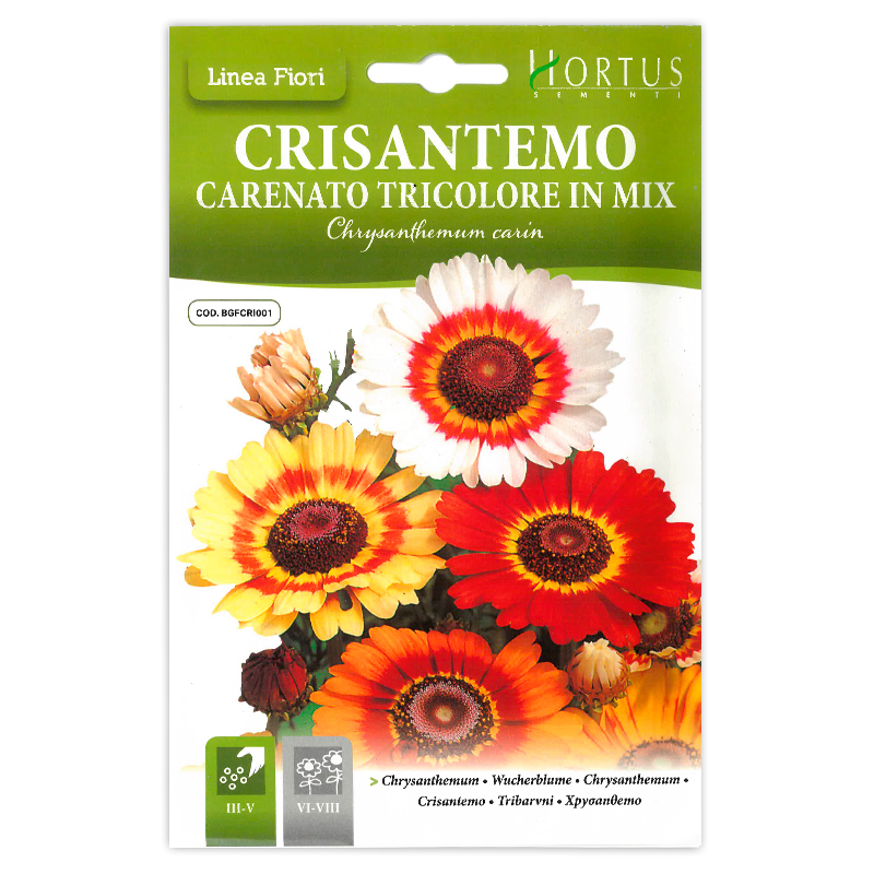Crizantema "Carenato Tric" - este o varietate de crizantemă apreciată pentru florile sale mari și vibrante, care aduc o explozie de culoare în grădini și aranjamente florale. Petalele acestei crizanteme sunt de obicei de un amestec de nuanțe de roșu și galben, creând un contrast spectaculos. Planta are un aspect compact și dens, cu tulpini puternice și frunze verzi lucioase care sprijină inflorescențele mari și colorate.