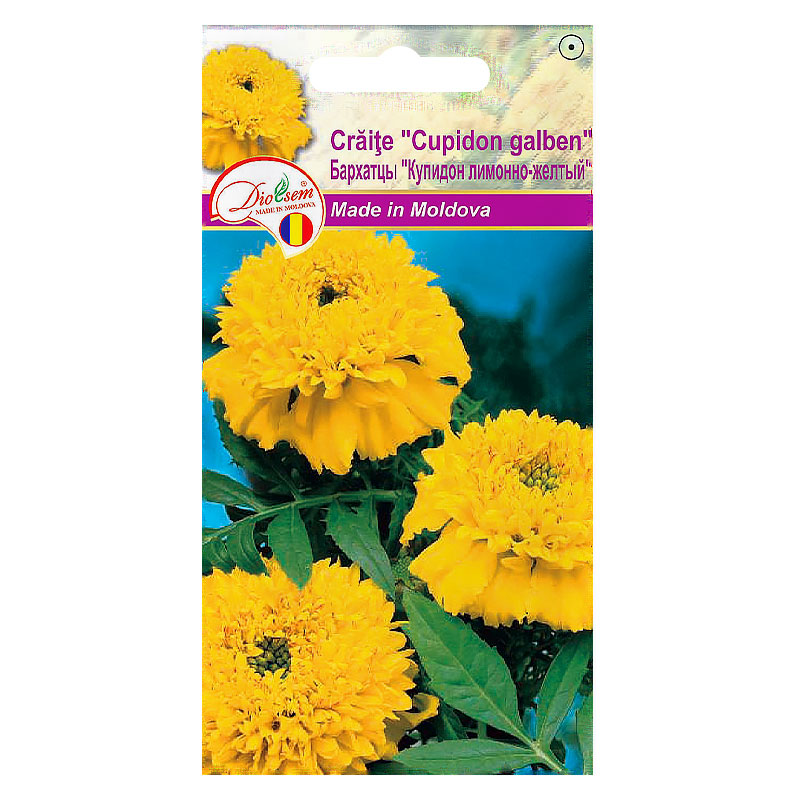 Crăițe Cupidon galben - plantă anuală. Tulpinile sunt verticale cu înălțimea de 25-30 cm, foarte ramificate la bază, cu muguri laterali înclinați. Inflorescența se formează din coșuri de un galben aprins cu diametriul de 10-12 cm. În câmp deschis se seamănă la sfârșitul lunii mai - începutul lunii iunie. Răsadurile apar timp de 5-10 zile. Înflorirea începe în luna iunie. Crăițile plantate lângă culturile legumicole reduc îmbolnăvirea lor cu boli fungice, în special Fusarium. Protejează împotriva anumitor tipuri de nematode. Crăițele sunt folosite în toate tipurile de mixuri de flori. Ele crescbine în ghivece, vazoane, cutii de balcon.