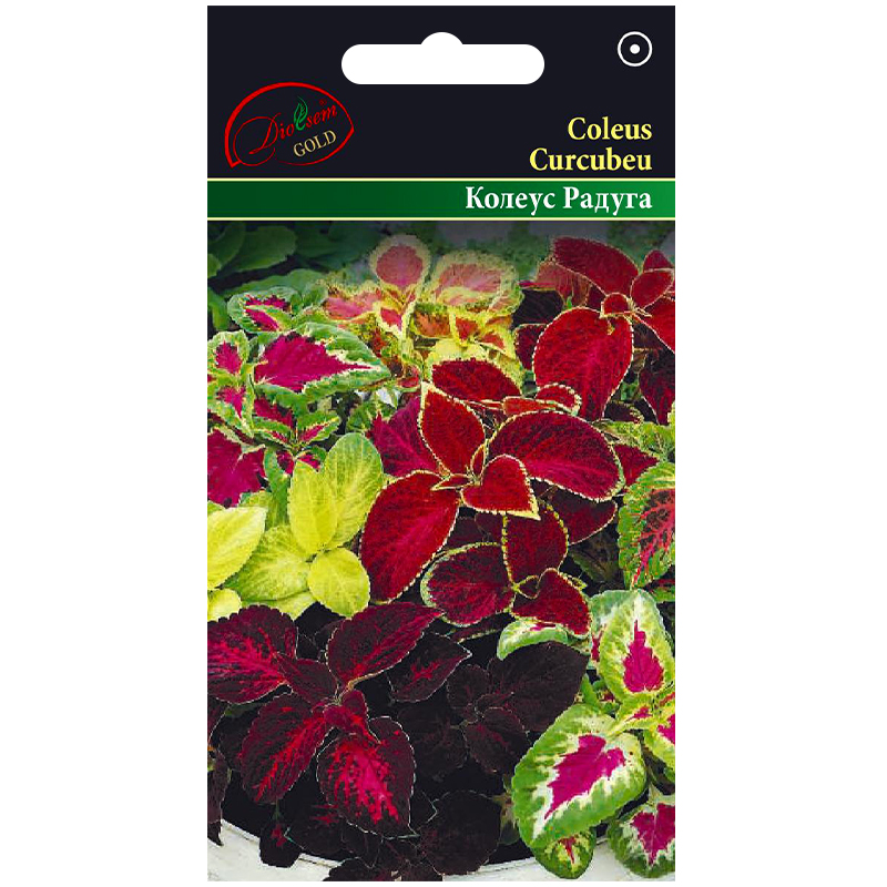 Coleus Curcubeu - este o plantă anuală decorativă, cu o înălțime de 25-35 cm și frunze de dimensiuni medii în multe combinații de culori, cum ar fi verde-galben, maro și roșu maro. Semințele pentru răsaduri se plantează la începutul primăverii, în lunile martie-mai, iar răsadurile apar în 10-14 zile după plantare. Coleus este una dintre cele mai atractive plante decorative, potrivită pentru cultivare atât în grădină, cât și în interior, pe pervaz. Este ideală pentru a înfrumuseța bordurile, jardinierele și balcoanele.