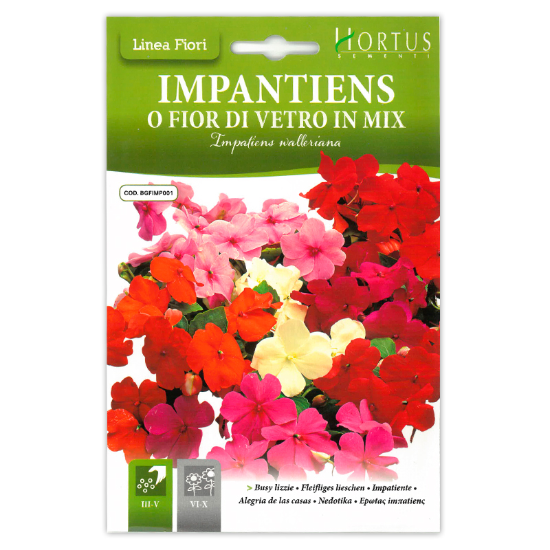 Impatiens "Fior di Vetro" - este o plantă anuală frumoasă, apreciată pentru florile sale delicate și colorate, precum și pentru perioada îndelungată de înflorire. Aceasta atinge o înălțime de aproximativ 20-50 cm, formând tufe compacte cu frunze verzi și suculente. Florile sale, asemănătoare cu picături de sticlă, apar în nuanțe variate de roz, roșu, alb, portocaliu și violet. Preferă locurile semiumbrite, solurile umede și bine drenate, precum și udarea regulată. Este ideală pentru straturi florale, borduri, jardiniere sau pentru cultivarea în interior, aducând un plus de prospețime și culoare oricărui spațiu.