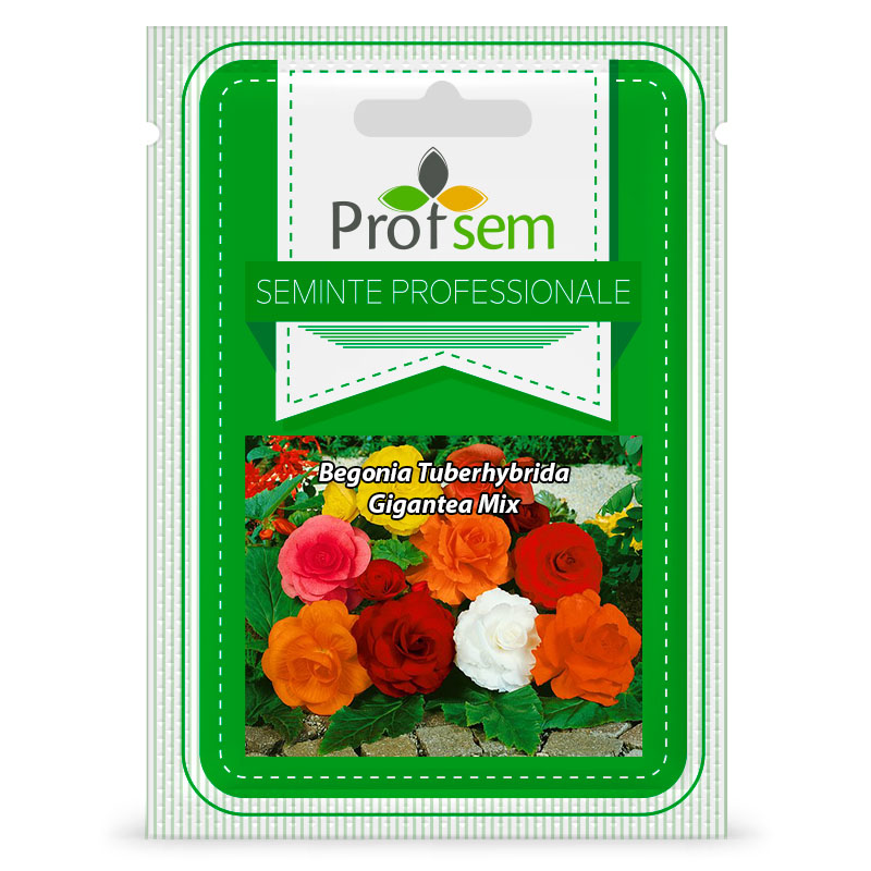Begonia tuberhybrida gigantea "Mix" - o plantă erbacee cu un tubercul subteran gros-rizom, tulpini translucide Suculente, înălțime de la 20 la 80 cm. frunzele au un aranjament regulat, în formă de inimă, asimetric. Florile, în funcție de soi, sunt simple, semi-duble, duble. Culorile variază de la alb la roșu închis, galben, portocaliu, cu excepția nuanțelor de albastru, Albastru deschis, violet. Florile sunt heterosexuale, monoice, adică florile masculine și feminine sunt situate pe aceeași plantă. În formă, florile sunt non-duble, semi-duble și duble. Cu polenizare suplimentară, begonia tuberoasă formează bine semințe, care în 1 g. conține de la 80 la 120 de mii. Înflorirea are loc din mai până în noiembrie. Iarna, begonia își pierde frunzele, intră într-o perioadă de odihnă.