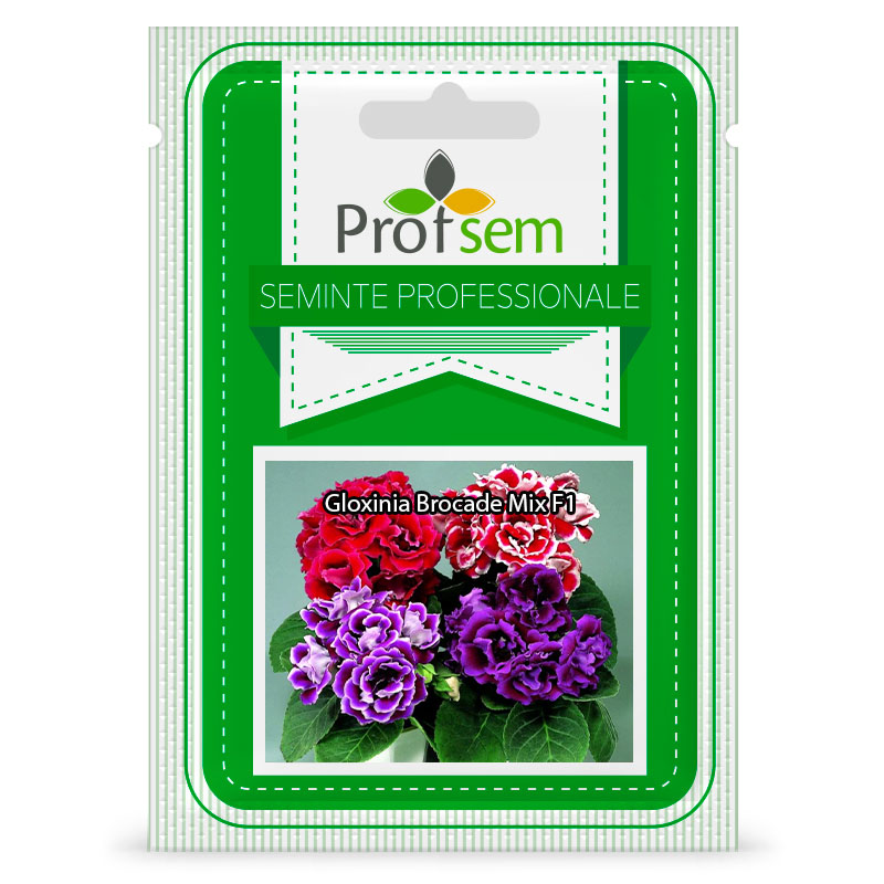 Gloxinia "Brocade Mix F1" - acest soi se remarcă prin florile sale neobișnuite, cu textură densă și aspect de terry, care se vor deschide în toată splendoarea lor începând cu luna iunie. Frunzele adunate în rozetă susțin florile ca o manșetă, conferindu-i un aspect de buchet și prelungindu-i durata de viață. Această plantă are o înălțime de 20 cm și diametrul florii este de 8 cm.