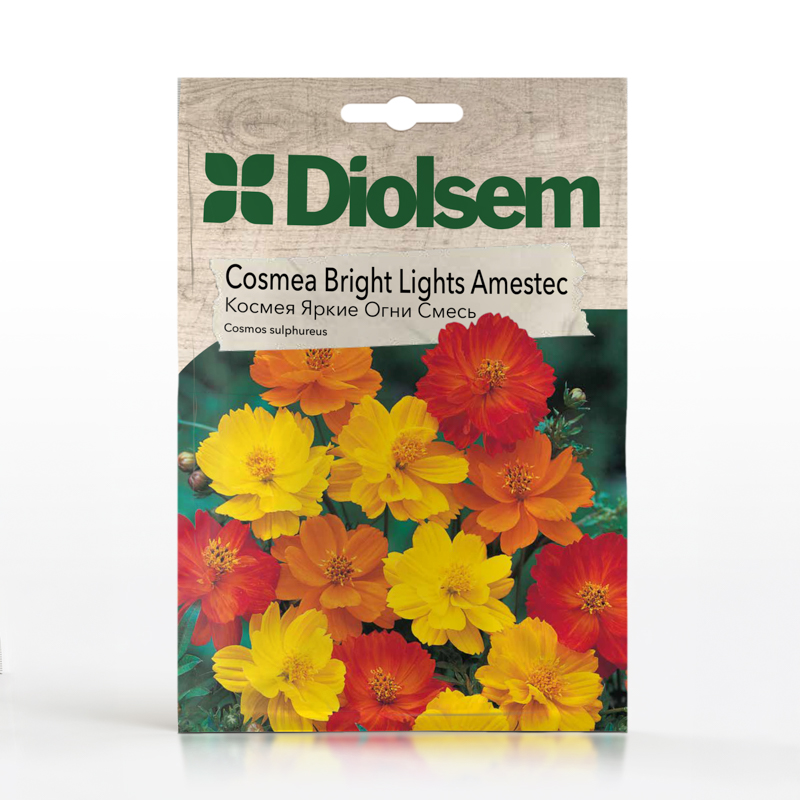 Cosmea Bright Lights este o plantă anuală cu flori galben, roșu și portocaliu, înflorind iulie–octombrie. Înălțime 30–60 cm, tulpini viguroase și ramificate. Preferă loc însorit, sol afânat și bine drenat, cu udare regulată. Rezistentă la boli și dăunători, potrivită pentru straturi, grădini și flori tăiate.