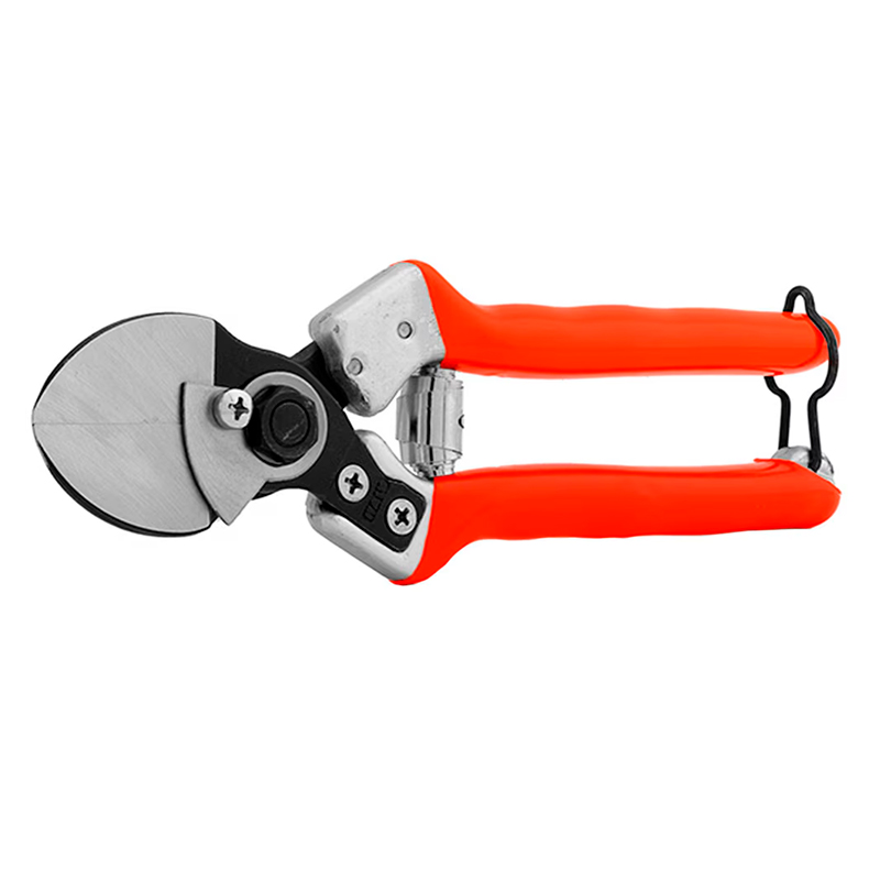 Foarfeca profesională cu lamă dublă și bloc de tăiere interschimbabil este ideală pentru pomii fructiferi. Lamele din oțel cu conținut ridicat de carbon sunt fabricate prin forjare la cald, cu șlefuire convergentă în centru, ceea ce le mărește capacitatea de penetrare în ramură, asigurând o tăiere curată și precisă. Acest lucru previne formarea cicatricilor pe scoarță și favorizează regenerarea corectă a plantei.