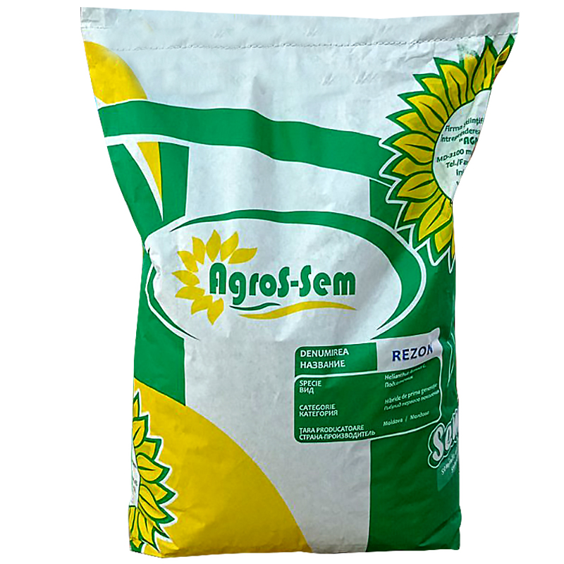 Floarea soarelui "Rezon" - plante de înălțime medie. Diferă în toleranță la boli - phomopsis, degradare albă și gri. Rezistent la cursele de răpire a măturii A-E. Nivel ridicat de rezistență la secetă și căldură extremă. Conținutul mediu de grăsime din semințe este de până la 50%. Aparține grupului de hibrizi cu însămânțare timpurie. Rezistență bună la vărsarea semințelor. Potrivit pentru cultivare pe tehnologie zero și minimă. Potrivit pentru semănat târziu și poate fi folosit pe culturi de miriște.