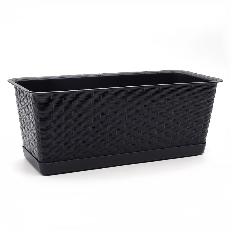 Un ghiveci dreptunghiular din colecția Ratolla cu o textură care imită cu exactitate țesutul din ratan. Ghivece de flori adânci, ideale pentru toate tipurile de plante. Produsul este fabricat din plastic.