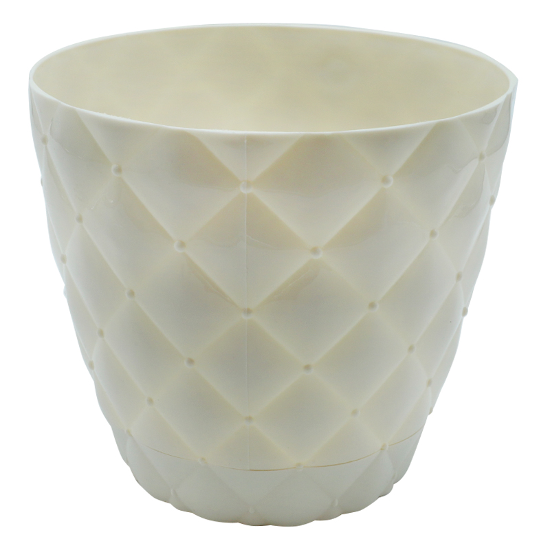 Acest vazon elegant, cu forme geometrice ce amintesc de diamante, adaugă un plus de modernitate oricărui spațiu. Finisat într-o nuanță delicată de bej, are un aspect sofisticat și rafinat, perfect pentru decorarea interiorului sau exteriorului. Formele geometrice, bine definite, creează un efect vizual deosebit, iar culoarea sa neutră se potrivește cu orice stil de design. Ideal pentru flori sau plante decorative, acest vazon adaugă o notă de eleganță subtilă și modernă, fiind un element de decor perfect pentru orice încăpere.