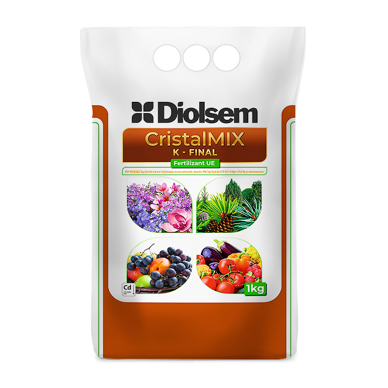 Diolsem CristalMix K – Final este un îngrășământ mineral de înaltă calitate, formulat special pentru a oferi plantelor un aport suplimentar de potasiu, esențial pentru o creștere sănătoasă și o dezvoltare optimă. Potrivit pentru toate tipurile de culturi, acest îngrășământ asigură o nutriție completă și echilibrată, concentrându-se pe necesitățile plantelor în fazele de fructificare și măturare. Datorită conținutului său ridicat de potasiu, Diolsem CristalMix K – Final îmbunătățește semnificativ absorbția nutrienților, stimulând dezvoltarea sistemului radicular și optimizând procesele de înflorire, formare și coacere a fructelor. Aplicarea regulată a acestui îngrășământ oferă rezultate vizibile într-un timp scurt, susținând sănătatea plantelor și maximizând randamentul culturilor tale.