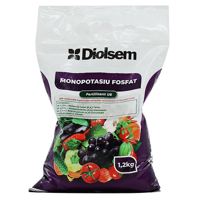 Diolsem Monopotasiu Fosfat – îngrășământ cristalin de înaltă calitate, bicomponent, complet solubil în apă. Este o sursă excelentă de fosfor și potasiu în cazul unei cereri limitate de azot. Produsul este utilizat în primele etape de creștere a plantelor. Fosfatul monopotasic este utilizat la producerea amestecurilor de îngrășăminte și direct ca îngrășământ. Utilizarea sa principală este fertirigarea și fertilizarea foliară a culturilor agricole, pomicole și horticole atât sub acoperire, cât și în câmp. Fosfatul monopotasic numit îngrășământ fosfor-potasiu, este utilizat pentru a crea îngrășăminte lichide și amestecuri de îngrășăminte solide multicomponente.