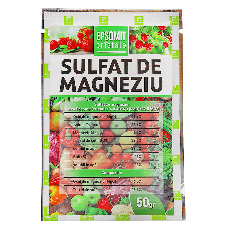 Sulfatul de magneziu este un îngrășământ foarte pur, care se dizolvă rapid și complet. Îmbunătățește culoarea frunzelor și, atunci când este utilizat în aplicații foliare, creează condiții mai puțin favorabile pentru creșterea fungilor. Este ușor de manevrat, dizolvat și aplicat, fiind dezvoltat pentru fertirigare în câmp deschis și sere, dar și pentru aplicații foliare.