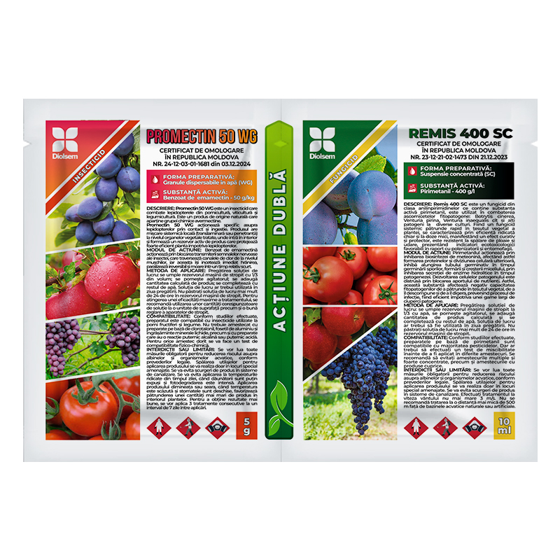Promectin 50WG. Insecticid sistemic local penetrant(translaminar) de origine naturală , este utilizat la protecția plantațiilor multianuale și legumicultură. Combate foarte eficient dăunatorii din clasa Lepidoptera(molii, viermele merelor,buha fructificațiilor, viermele prunelor) și alți dăunători greu de combătut.
