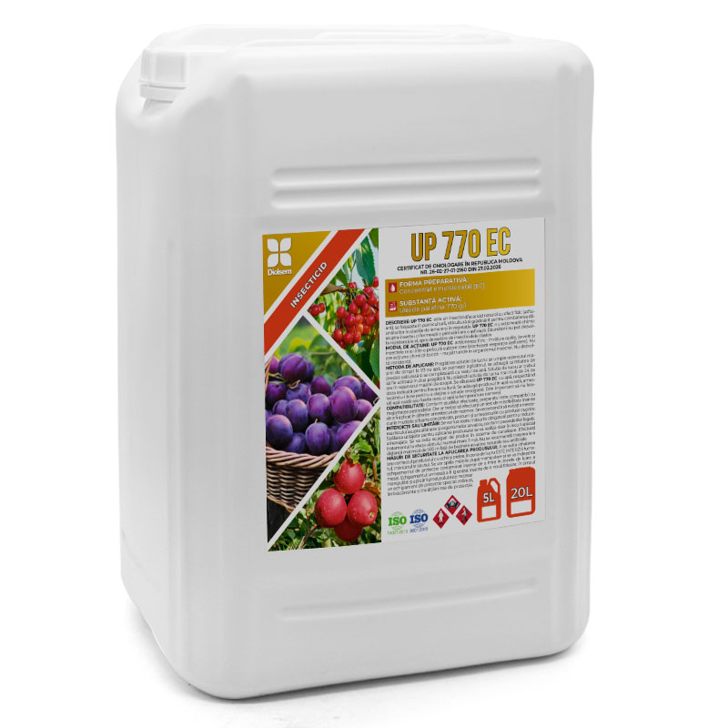 UP 770 EC este un insecticid/acaricid cu acțiune fizică (asfixiantă), utilizat în pomicultură, viticultură și grădinărit pentru combaterea dăunătorilor atât în perioada de repaus (iernare), cât și în vegetație. Produsul nu acționează chimic asupra insectelor, ci formează o peliculă care le blochează respirația. Datorită modului de acțiune, dăunătorii nu dezvoltă rezistență, spre deosebire de insecticidele clasice.