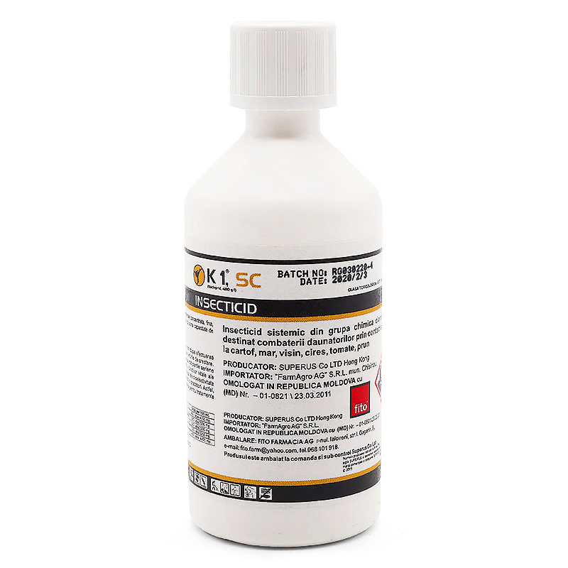Mod de acțiune: K1, SC are acțiune sistemică de lungă durată în plante. La aproximativ o oră după aplicarea tratamentului, substanța activă pătrunde în plante și este distribuită spre vârfurile de creștere. Acționează prin contact și ingestie asupra dăunătorilor care înțeapă sau rod părțile aeriene ale plantelor. Efectul constă în perturbarea ireversibilă a funcțiilor vitale ale centrilor nervoși ai insectelor dăunătoare, conducând la moartea lor. Produsul are o selectivitate excepțională față de insectele polenizatoare (cum ar fi albinele și bondarii), paraziții și prădătorii. În acest fel, K1, SC își extinde aria de utilizare în programe de combatere integrată, putând fi utilizat în tratamente preflorale, în timpul și după înflorire.