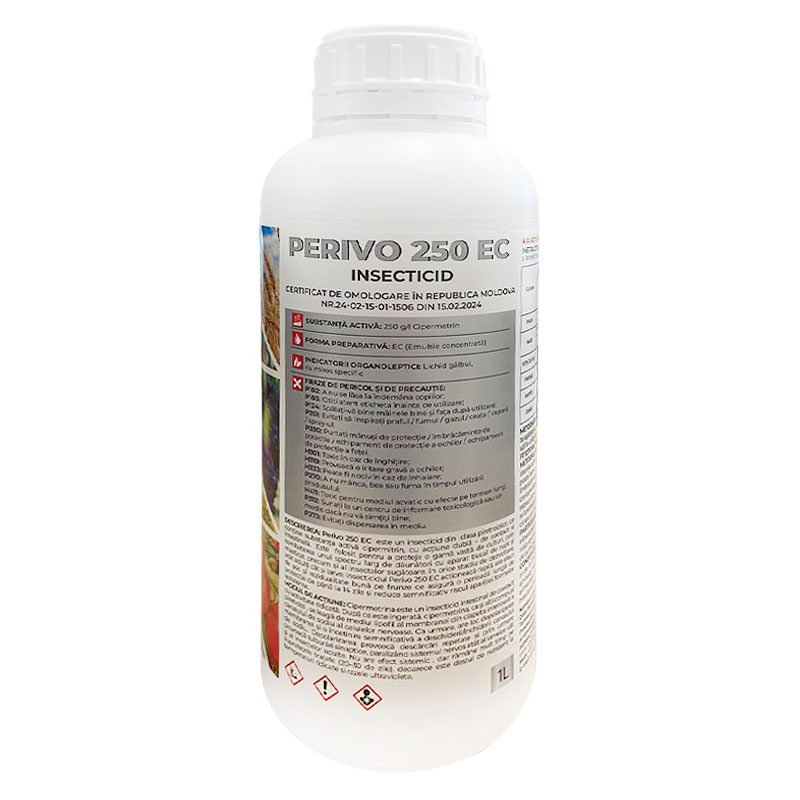 Perivo 250 EC este un insecticid din clasa piretroizilor, ce conține substanța activă cipermitrin, cu acțiune dublă - de contact si intestinală. Este folosit pentru a proteja o gamă vastă de culturi, prin combaterea unui spectru larg de dăunători cu aparat bucal de rupt și masticat precum și al insectelor sugătoare, în orice stadiu de dezvoltare, atât adulți cât și larve. Insecticidul Perivo 250 EC acționează rapid, are efect de șoc și rezidualitate bună pe frunze ce asigură o perioadă lungă de protecție de până la 14 zile și reduce semnificativ riscul apariției formelor rezistente.