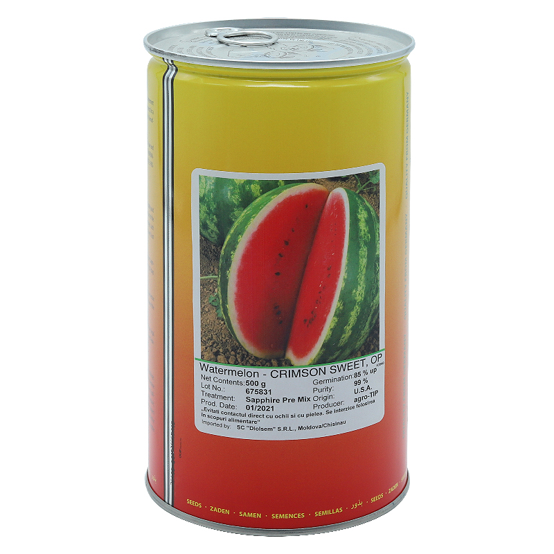Pepenele verde "Crimson Sweet" este o plantă cățărătoare medie. Productivitatea este de 5,5-6,5 kg/m2. Transportabil. Folosit proaspăt. Lider pe piață la maturitate timpurie (60-65 zile). Foarte productiv, potrivit pentru cultivare în teren deschis și sub peliculă. Oferă o recoltă stabilă chiar și în condiții uscate. Fructele sunt rotunjite, dungi, cu o greutate medie de 7-9 kg. Tolerează foarte bine transportul. Pulpa este roșu aprins, crocantă, dulce, textura fină. Rezistent la Fusarium. Pepene verde este o cultură ușoară și iubitoare de căldură. Pe banda de mijloc, semințele sunt înmuiate și germinate în a doua jumătate a lunii aprilie sau mai. Semănați la o adâncime de 3-4 cm.