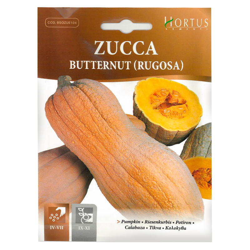 Dovleacul Butternut (Rugosa) este o varietate de dovleac cu formă de pară, având o coajă netedă, de culoare portocalie și o pulpă galbenă intens, cu un gust dulce și bogat. Acesta este apreciat pentru versatilitatea sa în bucătărie, fiind folosit în supe, piureuri, plăcinte sau chiar în salate. Timpul de creștere al dovleacului Butternut este de aproximativ 90-100 de zile de la plantare până la recoltare. Preferă locuri însorite și un sol bine drenat, bogat în nutrienți. Semințele pot fi semănate direct în grădină după ce pericolul de îngheț a trecut sau în interior pentru recolte mai timpurii, cu 4-6 săptămâni înainte de plantarea pe terenul exterior. Plantele de dovleac Butternut necesită un spațiu generos, lăsând distanță de aproximativ 90 cm între ele pentru a se dezvolta corespunzător. Recoltarea se face atunci când coaja devine fermă și capătă o nuanță portocalie intensă, înainte ca înghețul să afecteze plantele. După recoltare, dovlecii trebuie depozitați într-un loc uscat și răcoros.