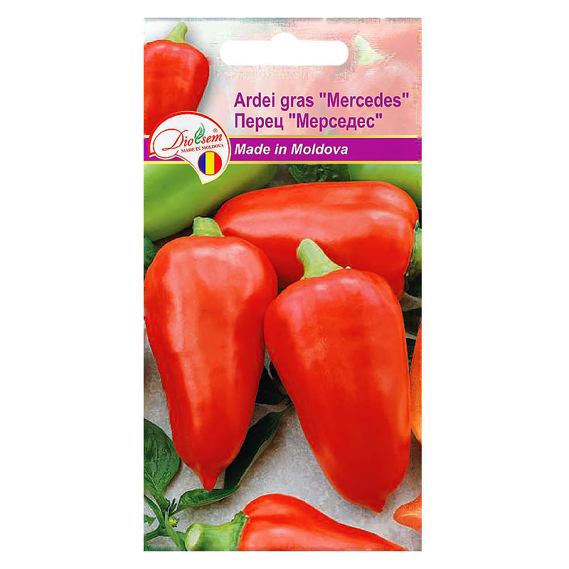 Ardei gras "Mercedes" - soi timpurie cu productivitate mare. Perioada de la răsărirea plantelor pînă la maturitatea tehnică 80-100 zile. Tufa cu tulpină înaltă de 60-70 cm. O plantă poate rodi pînă la 20 de fructe cu formă cilindrică, lungimea 12-15cm, grosimea 6-9cm şi greutatea de 130-160g. În faza maturităţii biologice fructele capătă culoare roşie. Pulpa este dulce, suculentă, foarte aromată. Grosimea peretelui fructului 7-8 mm. Utilizare universală. Soiul este rezistent la bolile caracteristice pentru ardei.
