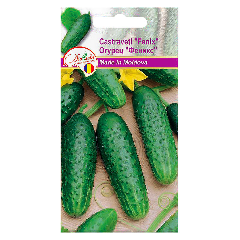 Castraveți "Fenix" - soi mediu, polenizat de albini, cu o perioadă de la germinare până la fructificare de 46-55 de zile. Planta este de tip indeterminat, de mărime medi, cu o înflorire de tip mixt. Fructele de lungimea 10-15cm cu nodozități, cu masa de 100-150g. Este de culoare verde închis, cu dungi lungitudinale albe scurte și cu protuberențe mici. Cu calități gustative excelente. Își păstrează calitățile până la 15 zile în condiții obișnuite.