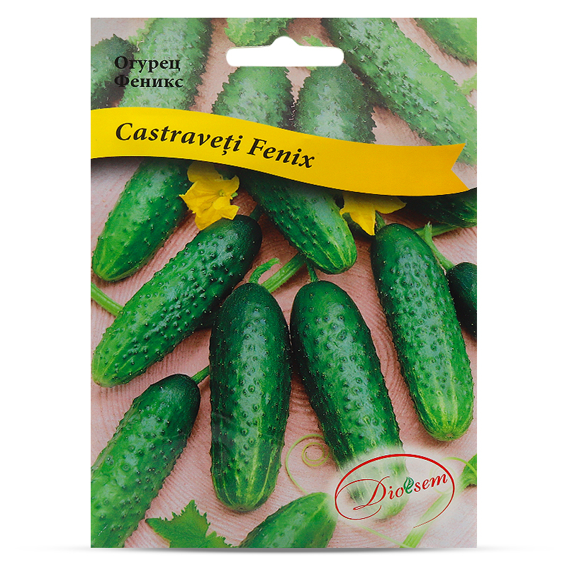 Castraveți "Fenix" - soi mediu, polenizat de albini, cu o perioadă de la germinare până la fructificare de 46-55 de zile. Planta este de tip indeterminat, de mărime medi, cu o înflorire de tip mixt. Fructele de lungimea 10-15cm cu nodozități, cu masa de 100-150g. Este de culoare verde închis, cu dungi lungitudinale albe scurte și cu protuberențe mici. Cu calități gustative excelente. Își păstrează calitățile până la 15 zile în condiții obișnuite.