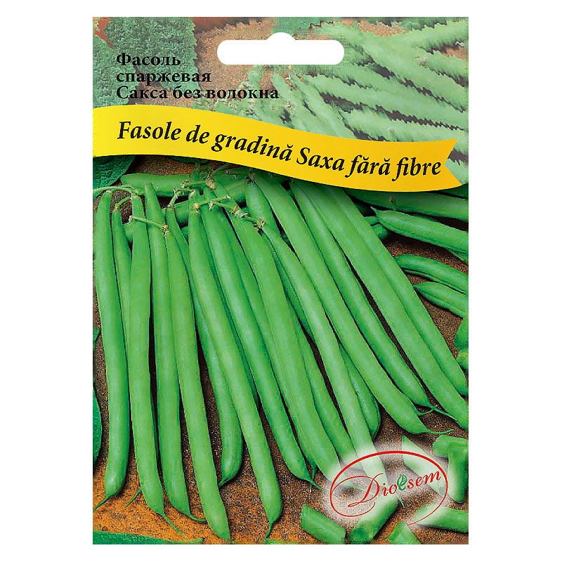 Fasole de gradină Saxa fără fibre - soi de sparanghel dulce, gustos, cu o coacere timpurie, de la răsărire până la prima recoltă 50 de zile. Plantă de tip arbust, cu înălțimea de 35-40cm. Boabele de culoare verde deschis, drepte, cu lungimea de 9-12cm, fine, cu calități gustative excelente, cu conținut bogat de zahăr și vitamine. Se recomandă pentru utilizarea în culinărie, la conservare sau pentru înghețare.