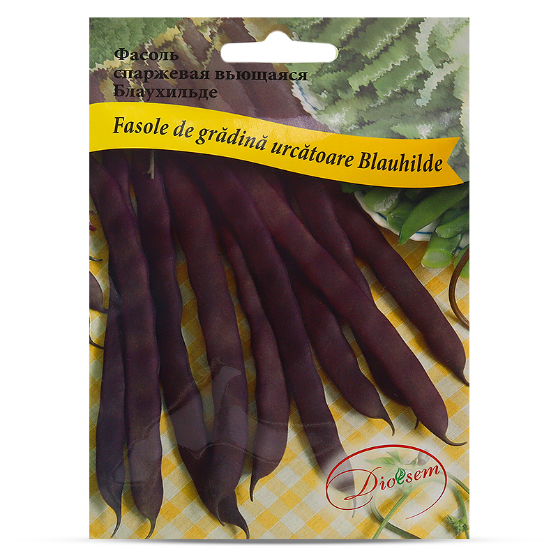 Maxi Fasole de grădină urcătoare Blauhilde - soi de maturare târzie. Perioada de vegetație de la încolțire până la maturitatea boabelor constituie 90-100 zile. Planta este agățătoare, cu lungimea 3-4m, necesită suport sau sădire de-a lungul unui gard înalt. Păstăile sunt late, cărnoase, fără fibre, cu lungimea de 16-22cm, de culoare violet închis, cu proprietăți gustative sporite. Semințele se sădesc după ce a trecut riscul înghețurilor de noapte. Păstăile de fasole se culeg selectiv, peste fiecare 3-5 zile. Se folosesc la conservare, congelare, prepararea supelor și garniturilor. După prelucrarea culinară, păstăile capătă culoare verde.