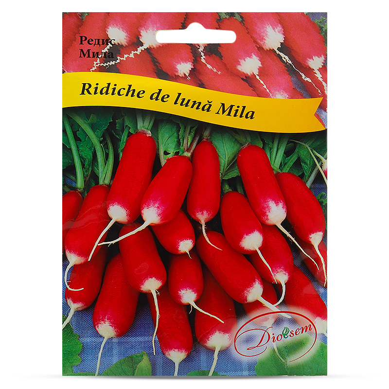 Ridiche de lună "Mila'' - soi cu maturare timpurie, productivitate mare, poate fi cultivat atât în câmp dechis, cât și în spații protejate, primăvara și toamna. Rădăcina are formă cilindrică cu diametrul de 1.5-2cm și lungimea de 4-4.5cm. Culoarea rădăcinii este roșie-aprinsă, cu vârful de culoare albă. Pulpa este de culoare albă, suculentă, fină și foarte gustoasă.