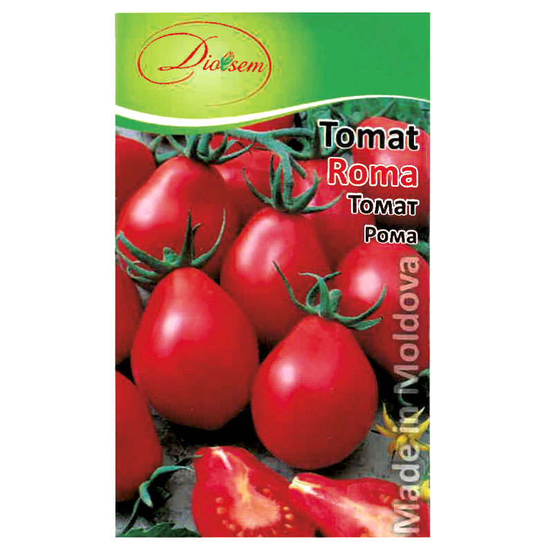 Tomate ''Roma'' - soi semitimpuriu cu destinație universală. Perioda de vegetație de la răsărire până la maturitate tehnică durează 110-120 zile. Plantă compactă, cu înălțimea de 60-80 cm. Fructele sunt alungite, în formă de pară, consistente, cărnoase, având masa de 90-100 g, cu excelente calități gustative. Recomandate pentru consum proaspăt și industrializare. Soiul este rezistent la complexul de boli ale tomatelor.
