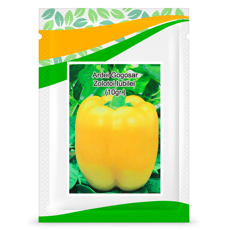 Ardei gogosar "Zolotoi Iubilei" - soi de mijloc de sezon (150-160 de zile). Planta este compactă, 45-55 cm înălțime. Fructele sunt atractive, galben strălucitor, rotunde, convenabile pentru umplut, cântărind 110-180 g. Pulpa este suculentă, fragedă, grosimea peretelui 8.5-10 mm. Utilizare universală: salate, conserve. Calități gustative excelente. Preferă zonele însorite cu soluri neutre, fertile, ușoare.