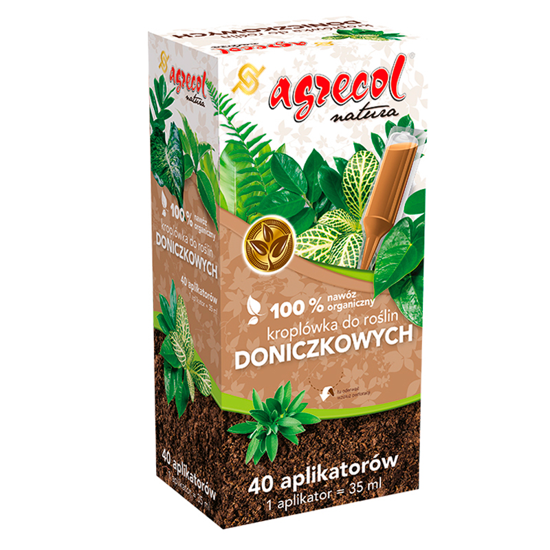 Îngrășământ Agrecol pentru plante verzi (aplicatoare) - este un îngrășământ organic lichid. Conceput pentru cultivarea plantelor ornamentale în ghivece. Este recomandat pentru fertilizarea plantelor ornamentale cu frunze, precum și a plantelor cu flori, de exemplu: zamiokulki, dieffenbachia, iederă, palmieri, ficusuri, begonii, kalanchoe, violete africane, amaryllis, anthurium, ciclamen persan și multe altele. Îngrășământul într-un aplicator special este foarte ușor și convenabil de utilizat, este introdus automat în pământ.