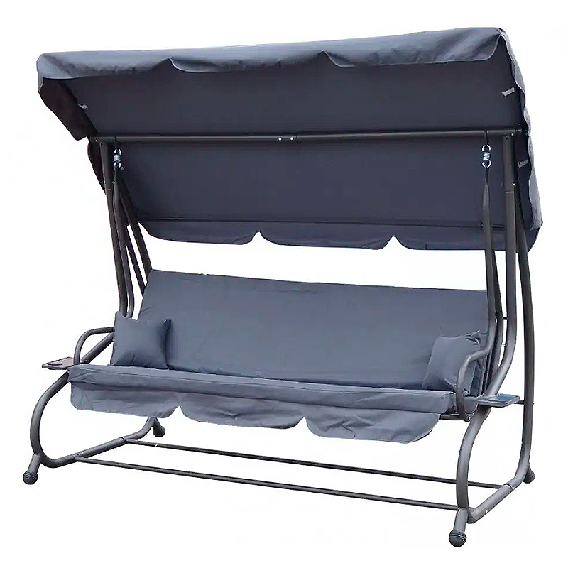 Leagănul tip Deluxe - este o piesă elegantă și confortabilă, ideală pentru grădină sau terasă, care poate fi utilizată atât ca balansoar, cât și ca pat de relaxare. Construcția solidă din oțel vopsit în câmp electrostatic și materialele rezistente la intemperii asigură durabilitate și stabilitate. Perna groasă de 8 cm și acoperișul din poliester oferă confort și protecție solară în timpul utilizării. Modelul este disponibil în două culori moderne – gri și bej – și aduce un plus de stil oricărui spațiu exterior.