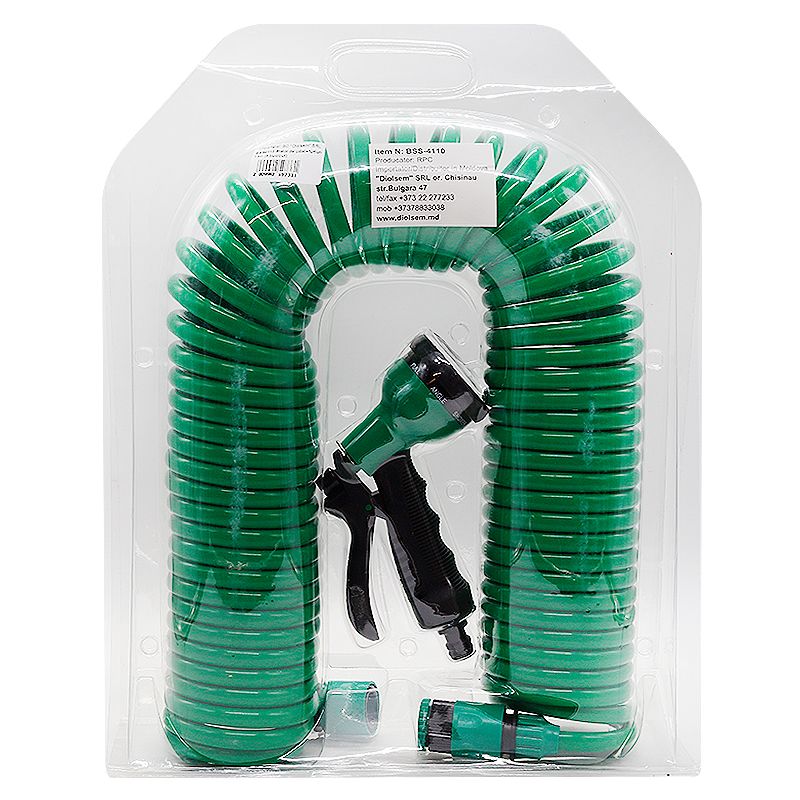 Pistolul de udare cu furtun spiralat de 15 m este conceput pentru udarea direcționată a parcelelor de casă, a grădinilor de legume, a straturilor de flori, a gazonului etc. Este compatibil cu toate elementele sistemului de udare și poate fi combinat cu dispozitivele și duzele necesare la cererea utilizatorului.