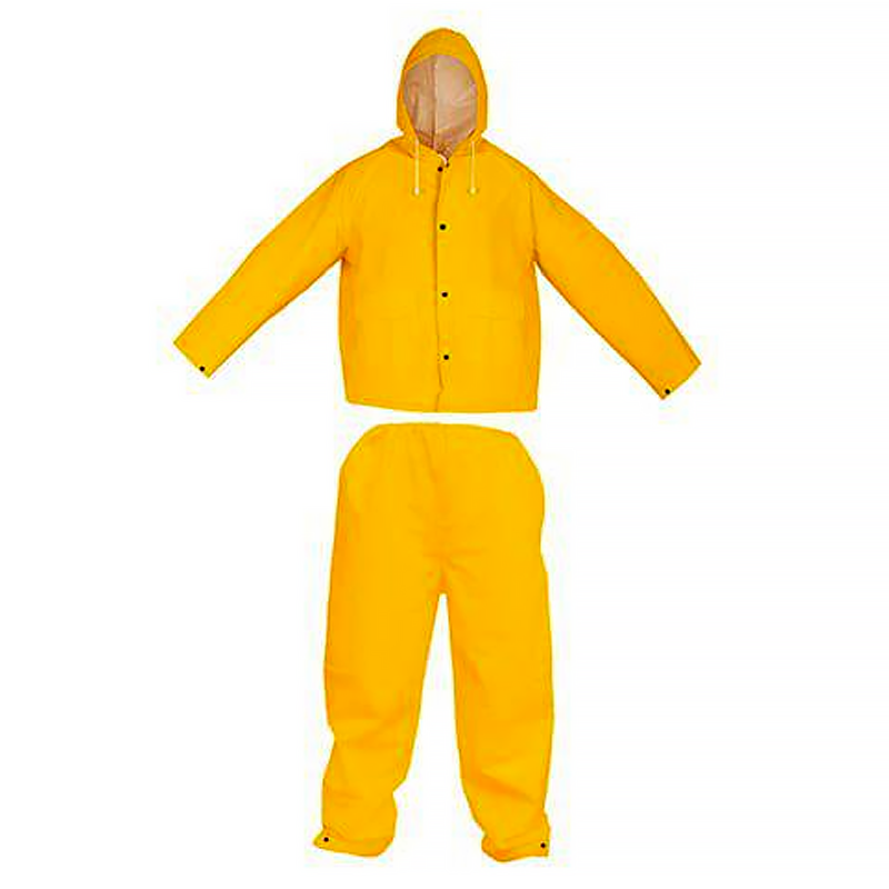 Husa de ploaie din PVC pentru vreme ploioasă este realizată din poliester durabil, ușor, cu un strat galben din PVC cu cusături cusute și sudate. Capacul de ploaie din PVC este potrivit pentru toate industriile, inclusiv silvicultură, minerit, agricultură și lucrători în aer liber. Culoarea galben strălucitor este clar vizibilă, asigurând siguranța, uscăciunea și izolarea lucrătorilor în condiții umede.