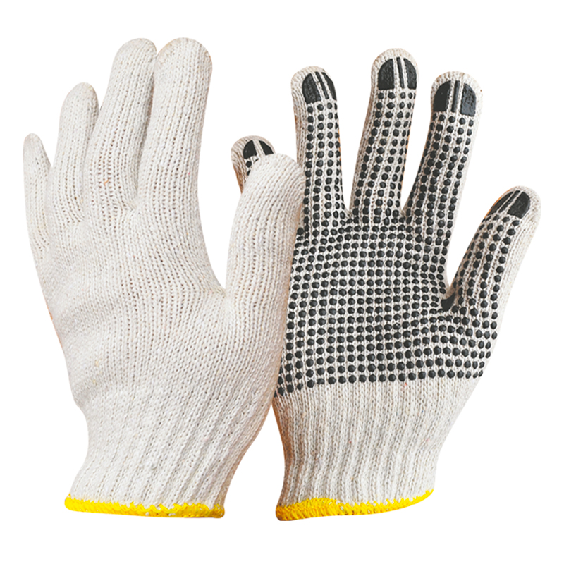 Mănuși tricotate pentru a proteja mâinile atunci când efectuați lucrări de depozitare, instalare, gospodărie și grădină. Mănușile de lucru au o proporție semnificativă de bumbac, permit mâinilor să "respire" și oferă confort la locul de muncă, schimbul liber de aer previne transpirația mâinilor, poliesterul adaugă rezistență, iar punctul din PVC protejează baza de abraziune, banda elastică de pe manșetă fixează ferm mănușa pe mână, împiedicând pătrunderea construcțiilor și a resturilor menajere, overlock-ul împiedică dizolvarea mănușii. Acestea sunt recomandate pentru munca de severitate moderată.