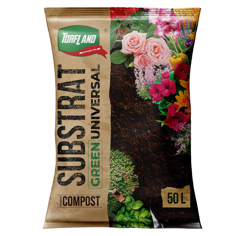 Substratul GREEN UNIVERSAL Torfland este prietenul de bază pentru toată flora casei şi a grădinii tale. Produsul reprezintă un material bio organic, pe baza de turbă naturală şi adaos de compost, ultimul fiind obținut în urma fermentării lente a diferitor tipuri de resturi vegetale şi biomasă. Substratul Green Universal Torfland prezintă caracteristici deosebite remarcîndu-se printr-o calitate înaltă, obținută în urma utilizării materiilor prime de calitate superioară. Totodată formează o structură unică de sol, care asigură o aerisire optimă, accelerand creşterea rădăcinilor. Prin componența sa de îngrăşămînt organic, asigură o fertilizare iniţială bogată, impulsionind atit creşterea plantelor cît şi fortificarea sistemului radicular al plantelor. Datorită particularităților fizico-mecanice ale substratului, asigură o capacitate de absorbție înaltă şi prin urmare plantele sunt alimentate corespunzător cu apă. Conceptul substratului Green Universal Torfland crează un sol indispensabil pentru trans- plantarea răsadurilor de legume și flori, pentru cultivarea fructelor și legume BIO-ecologice, atit în containere, cît şi în aer liber. Recomandat şi pentru plantarea pomilor şi arbuştilor fructiferi. Întruneşte toate condițiile necesare pentru agricultura ecologica.