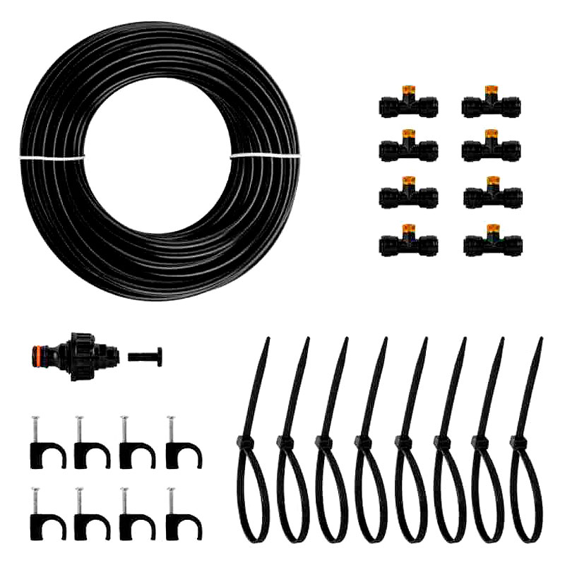 Setul furtun-aspersor ceață eficientă a soluției practice și pentru udarea și răcorirea zonei din jurul casei tale sau a spațiilor verzi. This inovatoare combinație de furtun și aspersor oferă o modalitate simplă și comodă de a menține vegetația proaspătă și de a crea un ambient plăcut în zilele călduroase.